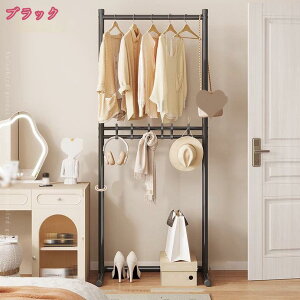 いため、調和を取りやすく様々なイメージのお部屋にも、すんなり馴染む木材です。 【多機能デザイン】 2段構造で、上段にはコートやジャケットを掛け、下段には靴やバッグを置くことができます。キャスター付きなので...