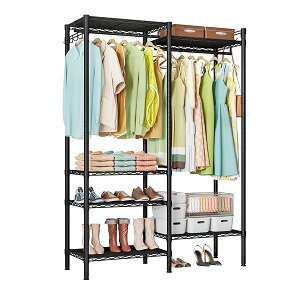 ーの外拡の独特なデザインは、あらゆるニーズを考慮しています。2本服をかけてもぶつからないハンガー、2段の長い棚板、3段の短い棚板、サイド