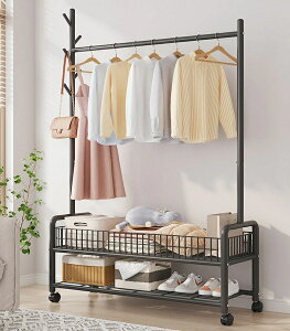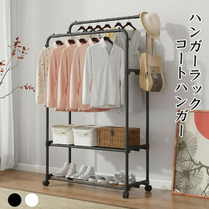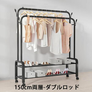 ハンガーラック 物干しスタンド 洋服ラック 洋服ハンガー ワードローブ ダブル コート掛け 衣類収納 頑丈 大容量 省スペース キャスター付き 組立簡単。
