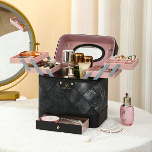 超軽量で女性でも持ち運びが簡単な人気の化粧品収納ボックスです。化粧箱の魅力を体現しています。 【大容量】底が広い4層トレイと化粧箱で小物も整理して見やすく収納できます!増え続けるローション、ローション...