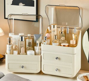 【大容量&収納力拔群】粧水・乳液・下地・ファンデ・アイシャドウ類の他筆数本・ブラシ、ネイル用品など、増えていくコスメをきれいに使いやすく収納できます。【防塵防水&蓋付き】化粧品ケースはクリアカバーと引き出し付きのデザ