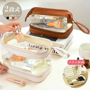 2層構造で収納力が高い化粧ポーチです。 透明なので中身が確認しやすくてGOOD◎ 持ち手付きで持ち運びにも便利です♪ 【サイズについて】 画像をご参照ください。 【カラーについて】 生産ロットにより柄の出方や色の濃淡が異なる場合が