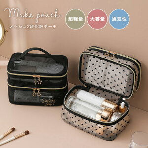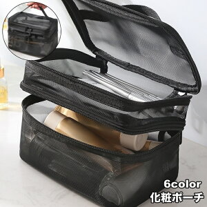 2層構造で収納力が高い化粧ポーチです。 メッシュなので中身が確認しやすくてGOOD◎ 持ち手付きで持ち運びにも便利です♪ 【サイズについて】 画像をご参照ください。 【カラーについて】 生産ロットにより柄の出方や色の濃淡が異なる場