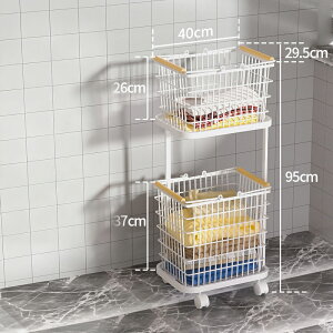 サイズ/約幅59.6×奥行35×高さ136cm 内寸/上バスケット:約幅41.6×奥行28.4×高さ10.8cm 下バスケット:約幅34.8×奥行24.8×高さ36.5cm 重量/約2.3kg 内容量/1台 材質/バスケット、