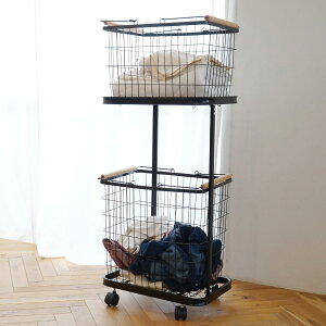 ステンレス製のバスケットが2個付いた、省スペースランドリーバスケット。キャスター付きで移動も簡単。●水に強いステンレス製のバスケットの大容量タイプ(本体のフレームはスチール製)。●2段式なので省スペース。バスケットは洗濯物の出し入れが...