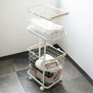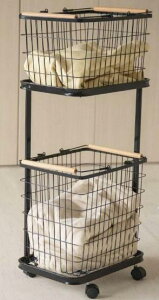 カゴ(大): 41.5×31×38.5cm 耐荷重: 20kg (1段あたり10kg ) 材質: 木材、鉄製 2段タイプの設計でお部屋の空間を取らず、有効活用! ・バスケットは取...