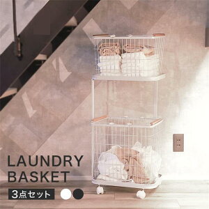 洗濯物入れに便利な2段式のバスケットラックと、カゴ2つの3点セットです。2つのカゴで洗濯物の分別などに最適です!ラックにはキャスターが付いておりますので、移動に便利です。【セット内容】■バスケットラック...