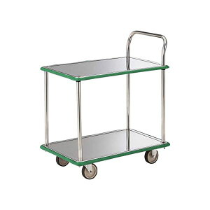 キャスター音が静かで軽い力で動かすことができる2段台車。大型車輪で操縦性もアップ。最大積載荷重は300kg。