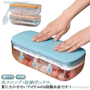 氷スコップ+収納ボックス、夏に欠かせないアイテムの2段製氷皿です! お好みによりクオリティの氷ができ、暑い夏に氷を作るときにおすすめ! 取り出しやすい、おうちでも簡単に美味しくて綺麗な氷ができます!蓋を閉めて押すとすべての