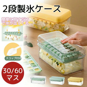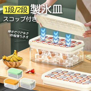 【製品仕様】[素材]蓋・氷入れる容器:ポリエチレンテレフタレート(PET樹脂) 製氷皿・アイススコップ:ポリプロピレン(PP)【商品詳細】【グッと押すだけ!】お子様もお年寄りもカンタンに氷が取り出せる!今までの製氷皿は「ひねる」