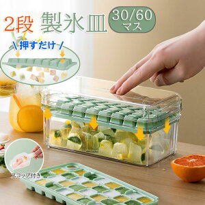 2段 / 64個取り出しやすいワンボタンデザイン密閉フタ付きで衛生的。匂い移りやほこりを防ぎます。革新的なボタンデザイン、1秒で氷を離します。一回で大量に作れます・重ね置き可能です。簡単な操作、簡単な脱型...