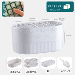 製氷皿 製氷器 製氷機 シリコン 大容量 蓋付き 1段 2段 家庭用 取り出しやすい 夏 四角氷 大量 小分け 夏休み 保存ケース アイストレー