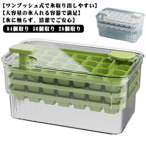 ※商品情報 カラー:グリーン オレンジ ベージュ 材質:PP + シリコーン サイズ:具体的なサイズは画像をご覧ください~ 氷の数: 56個取り 28個取り 省スペース:積み重ね可能なデザインが特徴のアイスキューブトレイには、蓋とビン...