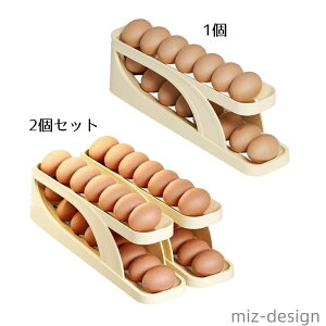 軽量でコンパクトなスリムタイプの卵ケースです。卵パックのままだと冷蔵庫内でかさばりがちですが、縦置きできるので省スペースでコンパクトに収納できます。上段から回転しながら卵が下段へ自動で移動するので上下移し替える手間が