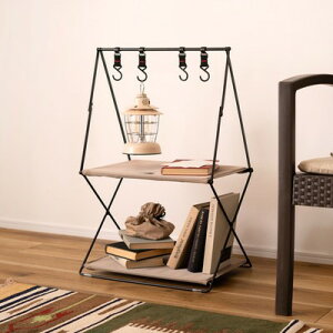 ◆フック付ハンギングラック ベージュ◆ 散らかりがちな小物類を手軽にまとめて収納できる 2段式の折りたたみオープンラック。 フック4個付きなので、様々な物を吊るして収納できます。 軽量で持ち運びもできるので...