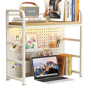 1.【大容量机上ラック】下段の高さ53cmで、ノートパソコンやモニターの収納が可能であり、さらには本、CD、イヤホン、書類、文房具など、さまざまな物をこちらの卓上ラックでしっかり収納できます 2.【効率的にスペース活用】有孔ボード