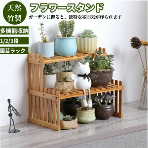 \レビューイベント開催中/フラワースタンド 天然竹製 1/2段 フラワーラック 園芸ラック ガーデンラック 木製スタンド 花棚 植物棚 盆栽棚 多肉植物棚 盆栽スタンド 屋内 屋外 収納ラック 花台 鉢植え...