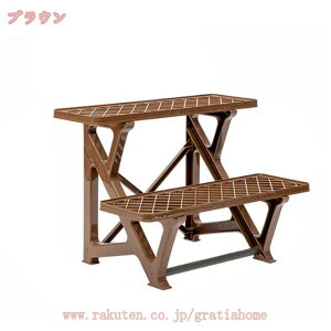 樹脂製なので錆びずに軽量、お手入れも簡単。 植木鉢のディスプレーに適した2段のフラワースタンド。 小型でシンプルなブラウンカラーのスタンドなので小物や雑貨を置いてインテリアの一部としても活躍。 ハーブや野菜栽培などちょっと