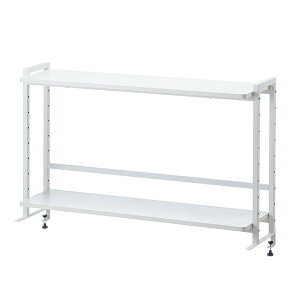 ハイシェルフです。■ 天板厚み15〜36mm、設置箇所奥行き40mm以上のデスクに取り付け可能。2段の棚は可動ピッチ51mmでお好みの高さに設置してご利用いただけます。