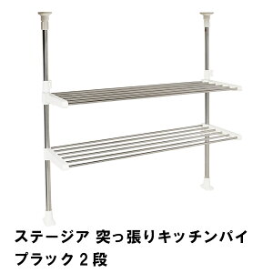 ステンレス つっぱりキッチンラック 2段 伸縮棚