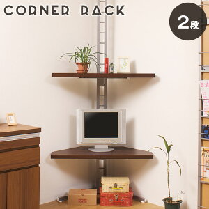 デッドスペースを有効活用できるコーナーラック。テレビ上の空間が収納スペースに!薄型液晶大型テレビの上、リビングボード上の空間を上手に使えばお洒落な飾り棚に早変わりするつっぱりラック。ナチュラル×シルバー コーナー用2段タイプ コーナー...