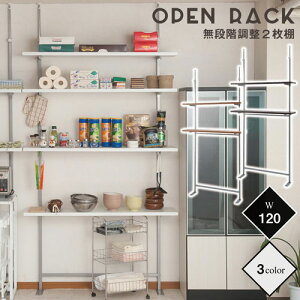 お部屋をアレンジできる突っ張りタイプのオープン棚。収納物に合わせて棚板の高さを無段階に調整できます。キッチン、リビング、ランドリー等、様々な場所で自由にアレンジできます。