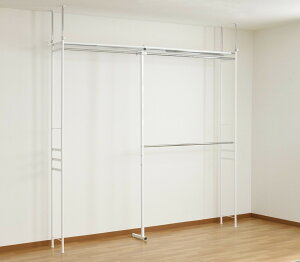 突っ張り ハンガーラック 2段 天井 つっぱりラック 壁面収納 伸縮 収納 ラック つっぱり棚 シェルフ つっぱり 頑丈 幅伸縮式 耐荷重120kg。