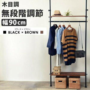 つっぱり ハンガーラック 棚付き 伸縮式 上棚 二段 伸縮クローゼット 洋服ハンガーラック 天井 洋服 衣類 衣服 衣装 衣装掛け 吊り下げ収納 壁面収納 クローゼット 木目 スチール 白 黒