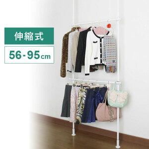 突っ張り式で縦横伸縮可能なハンガーラック。 ブラウスやコート、スカートなどをまるでアパレルショップのディスプレイのように収納できます。 幅は最大198cmまで広がるので、私服はもちろん...