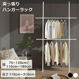 突っ張り ハンガーラック 2段 天井 つっぱりラック 壁面収納 伸縮 収納 ラック つっぱり棚 シェルフ つっぱり 頑丈 幅伸縮式 耐荷重70kg (幅110cm)