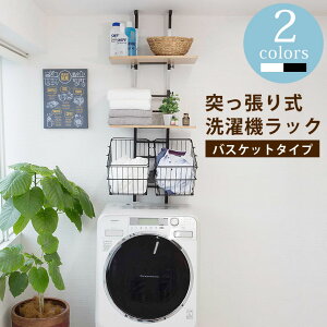 突っ張り式ランドリーラック かご付き エコー。素材 スチール、パーティクルボード+PVCシート。