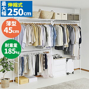 リビングやベッドルーム等の空いた空間の有効活用に◎ ●さらに、たくさんの衣類を一度に収納しても安心の突っ張り式です。 ●超スリムタイプなら幅50cmから突っ張れるので、ちょっとしたすき間が大量収