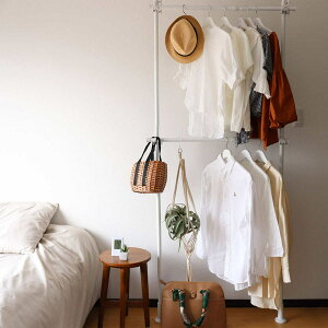 突っ張り ハンガーラック 2段 天井 つっぱりラック 壁面収納 伸縮 収納 ラック つっぱり棚 シェルフ つっぱり 頑丈 幅伸縮式 耐荷重120kg