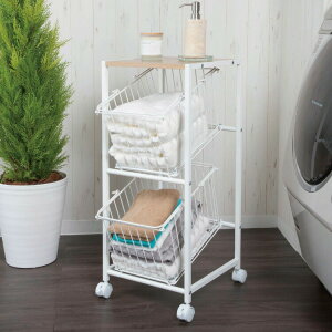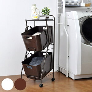 お洒落なランドリーに映えるシックなカラー。タオルや着替えなどお風呂回りの必需品を収納出来るカゴ付きワゴン。キャスター付きで移動も楽々。タオル、着替え、バスグッズなどお風呂の必需品をワゴンですっきり収納◆アイテム別、家族別に洗濯物を分別...