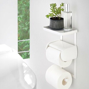 タワー tower トイレットペーパー ホルダー 上ラック2段 2連 小物置き トレー 棚付き ストッカー簡単 トイレラック ペーパー ストッカー