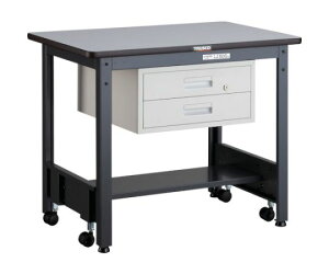 CFWS型作業台 900X600XH740 薄型2段引出付 CFWS-0960UDK2 1台●移動に便利なキャスター内蔵の作業台です。●コンパクトな2段引出し付です。●引出しは使い勝手に応じて任意の場所に取り付け可能です...