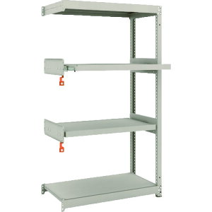 ボルトを1本も使用していないボルトレス構造で、分解・組み立て作業が簡単で、作業時間を大幅に短縮できます。 棚の段変更が、25mmピッチで、自由に調整、変更ができます。 高さ、奥行が同じであれば、増結することができま