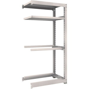 4段階で取付幅を調整できます。■ボルトを1本も使用していないボルトレス構造で、分解・組み立て作業を短縮できます。■棚の段数変更25mmピッチで、自由に調整、変更ができます。■高さ、奥行が