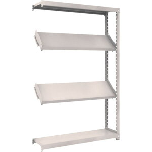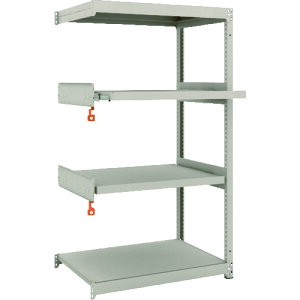 ボルトを1本も使用していないボルトレス構造で、分解・組み立て作業が簡単で、作業時間を大幅に短縮できます。■棚の段数変更が小刻みな25mmピッチで、自由に調整、変更ができます。■高さ、奥行が同じであれば、増結するこ