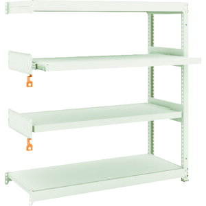 【特長】■棚板を軽い力で手前にスライドさせることができるので、奥にある荷物をスムーズに取り出すことができます。■簡易ストッパーが標準装備されているので棚板を押し込むと自動的にロックがかかり、棚板の飛び出しを防ぎます。