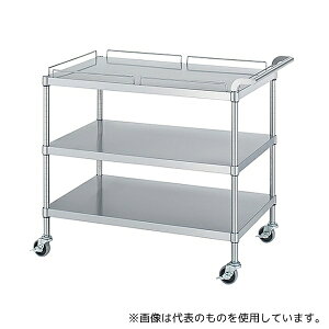 耐食性に優れたSUS304製ワゴン ●三段式(ガード付棚一段) ●片側ハンドル ●中棚・下棚位置変更可(25mmピッチ) 商品の仕様 ●材質:SUS304 ●ガード付棚...