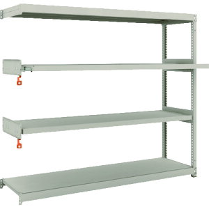 4段階で取付幅を調整できます。■ボルトを1本も使用していないボルトレス構造で、分解・組み立て作業を短縮できます。■棚の段数変更25mmピッチで、自由に調整、変更ができます。■高さ、奥行が