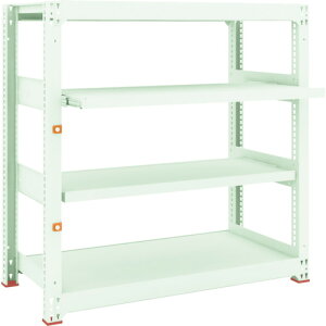 4段階で取付幅を調整できます。■ボルトを1本も使用していないボルトレス構造で、分解・組み立て作業を短縮できます。■棚の段数変更25mmピッチで、自由に調整、変更ができます。■高さ、奥行が