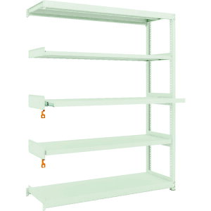 ボルトを1本も使用していないボルトレス構造で、分解・組み立て作業が簡単で、作業時間を大幅に短縮できます。 棚の段変更が、25mmピッチで、自由に調整、変更ができます。 高さ、奥行が同じであれば、増結することができま