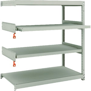 【特長】■棚板を軽い力で手前にスライドさせることができるので、奥にある荷物をスムーズに取り出すことができます。■簡易ストッパーが標準装備されているので棚板を押し込むと自動的にロックがかかり、棚板の飛び出しを防ぎます。