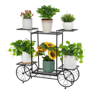 設計が追加されていて、高さの微調整ができるので、凸凹の地面にもラクに設置できます【大容量の大型植物棚】6つのトレイがあり、6鉢以上の