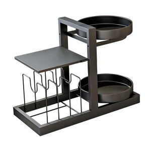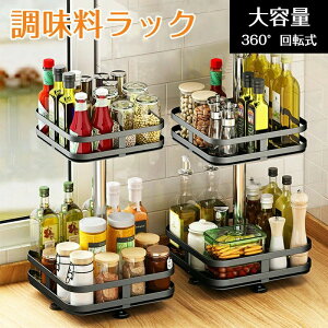 調味料ラック 回転ラック 2段式 304ステンレス鋼 キッチン 調味料入れ コーナーフレームブラック 回転角ラック 回転式調味料ラック 調味料収納棚 壁を傷つけない 多機能 スリム おしゃれ スパイスラック