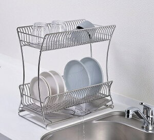 S型2段水切りラック サイズ:52cm/56cm コンパクトなのにたっぷり収納できるステンレス製ラック キッチンをシックに見せるデザイン! 2段式で省スペースにたくさん置ける! お箸やスプーンなどを置けるカトラリーポケット付き...