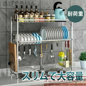 省スペースで大容量 ステンレス水切りラック2段シンクをまたいで設置でするのでシンク周りに置き場所がないとお困りの方にぴったりな水切りかご。下段は洗い物の量やご使用環境に合わせて奥行20?37cmで伸縮...