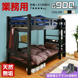 【耐荷重900kg超・業務用可】2段ベット 二段ベット 耐震地震に強い宮付き 木製ベッド 子供ベッド すのこベッド 天然木 寮 ベット 収納 スノコベット おしゃれ。